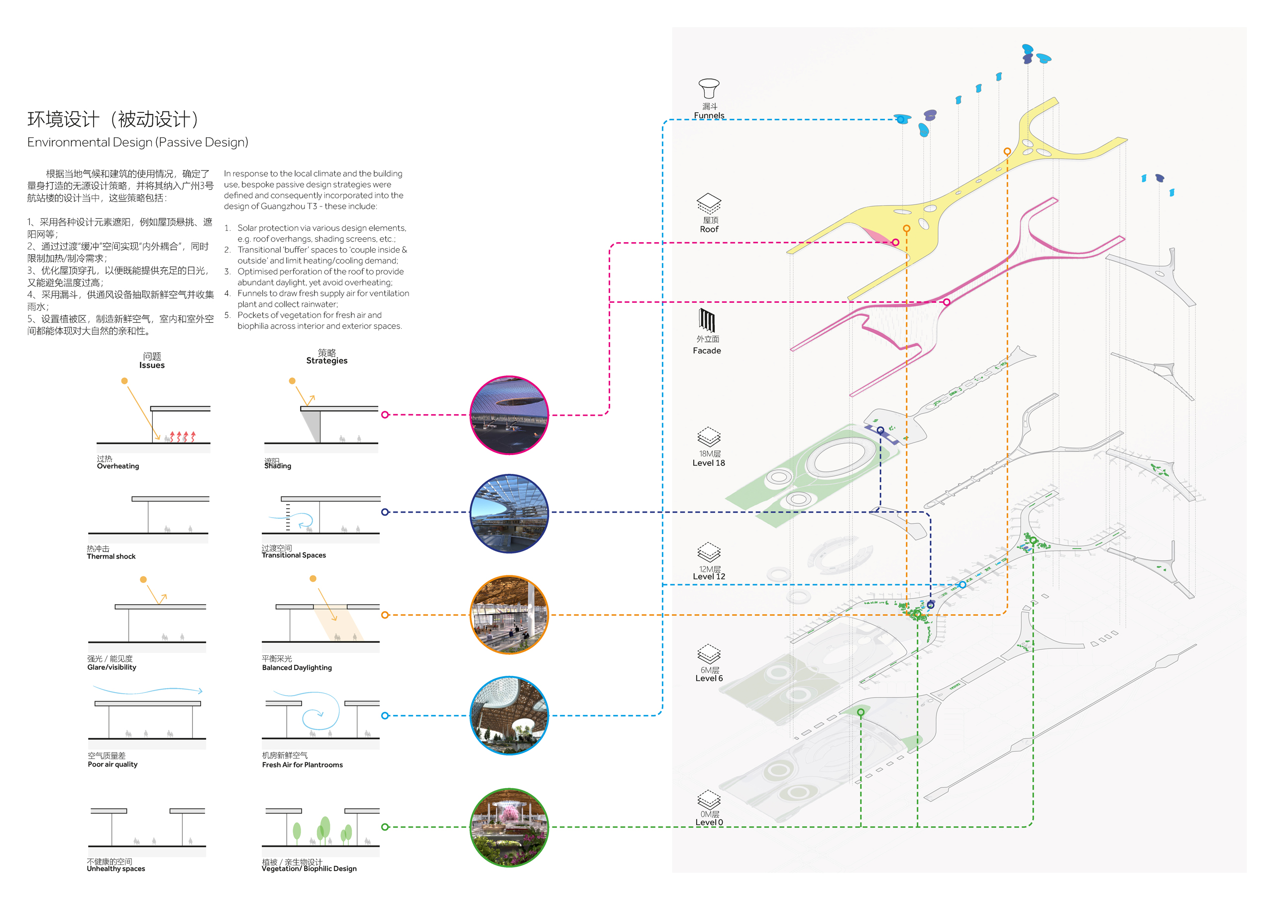 Through the incorporation of local vegetation, the airport not only enhances environmental sustainability but also provides passengers with diverse experiences, from efficient green fast tracks for those in a hurry to biodiverse paths for leisurely exploration. The design prioritizes intuitive navigation, ensuring clarity and convenience through signage, landmarks, and character districts that guide passengers seamlessly through the terminal.
